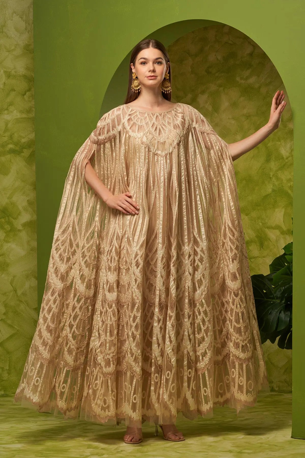 Some outfits just make Ramadan evenings feel even more special - this Circular Beige Kaftan is one of them. The intricate geometric applique embroidery adds just the right amount of detail, while the soft tulle crepe fabric flows effortlessly. Whether you're hosting iftar or heading to a gathering, this Ramadan kaftan lets you look put together without any effort. Just add a pair of earrings, and you're ready for the night.