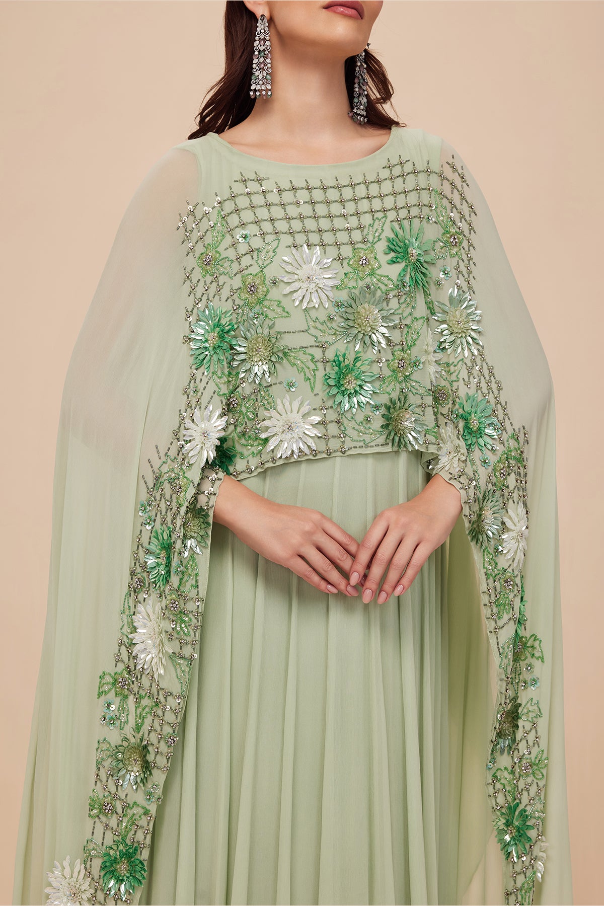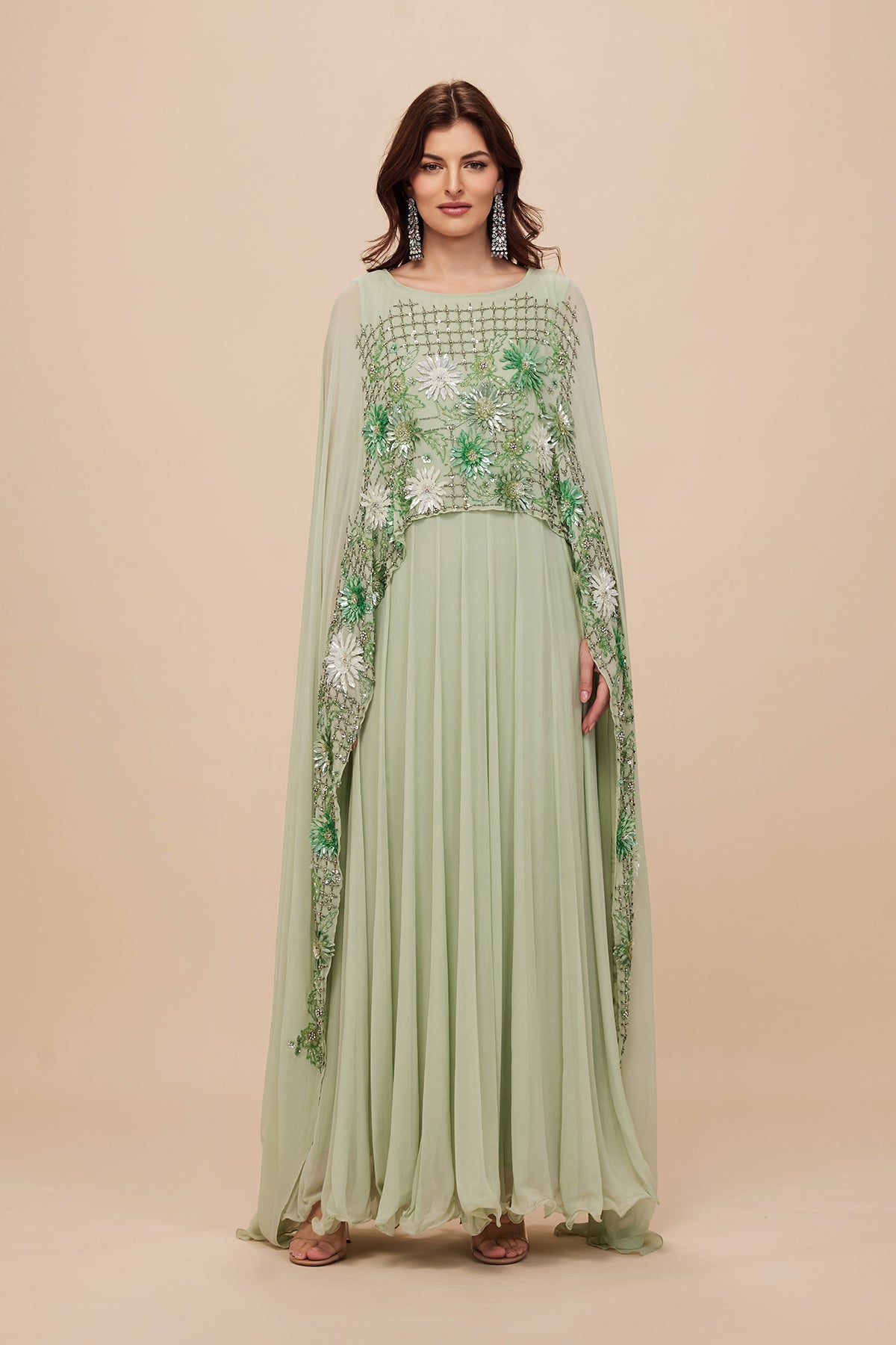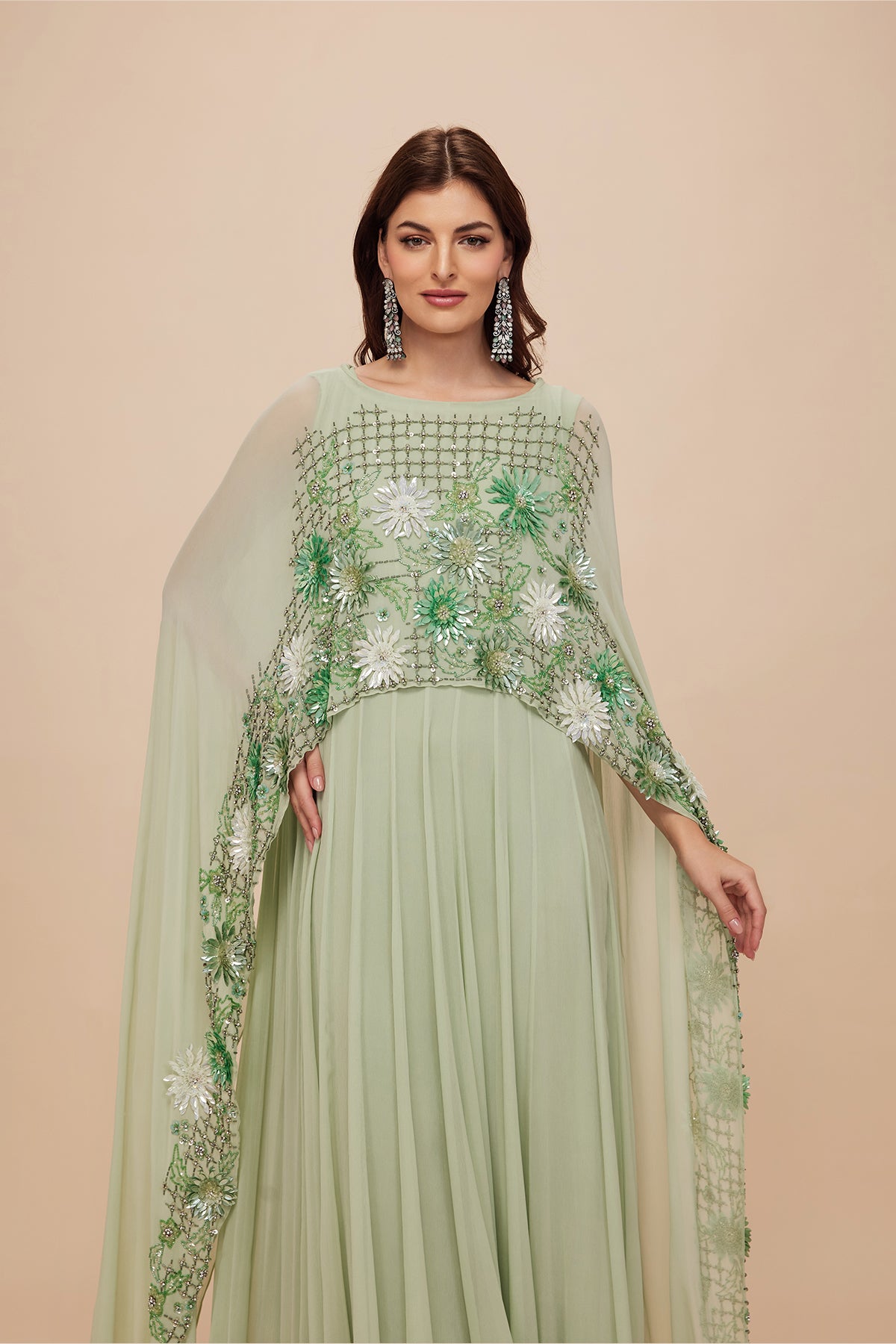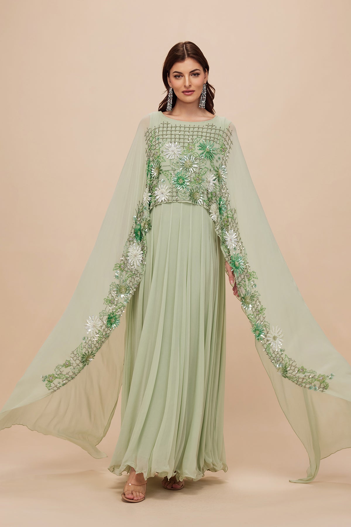A classic evening wear kaftan dress - this is a truly peace of art comprising fine sequins, beads, stones and unique hand cut hand applique embroidery elements