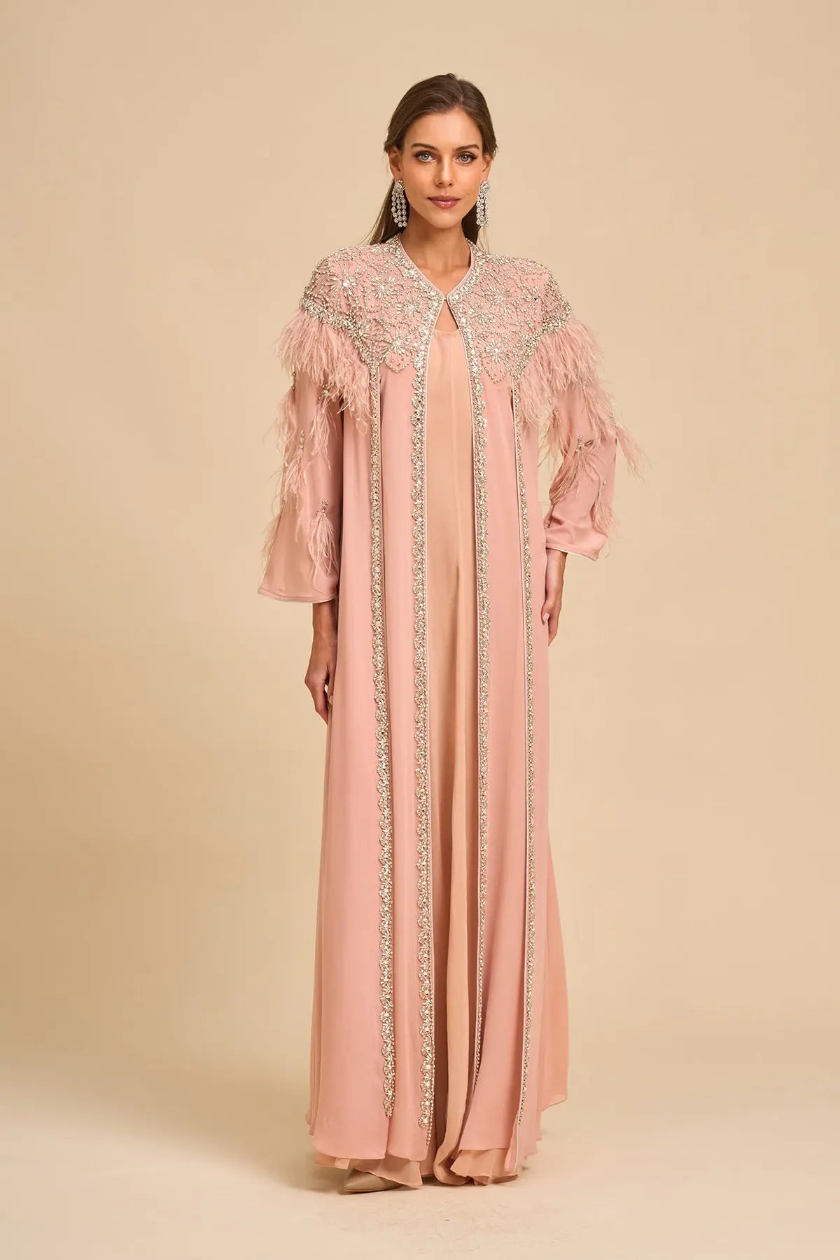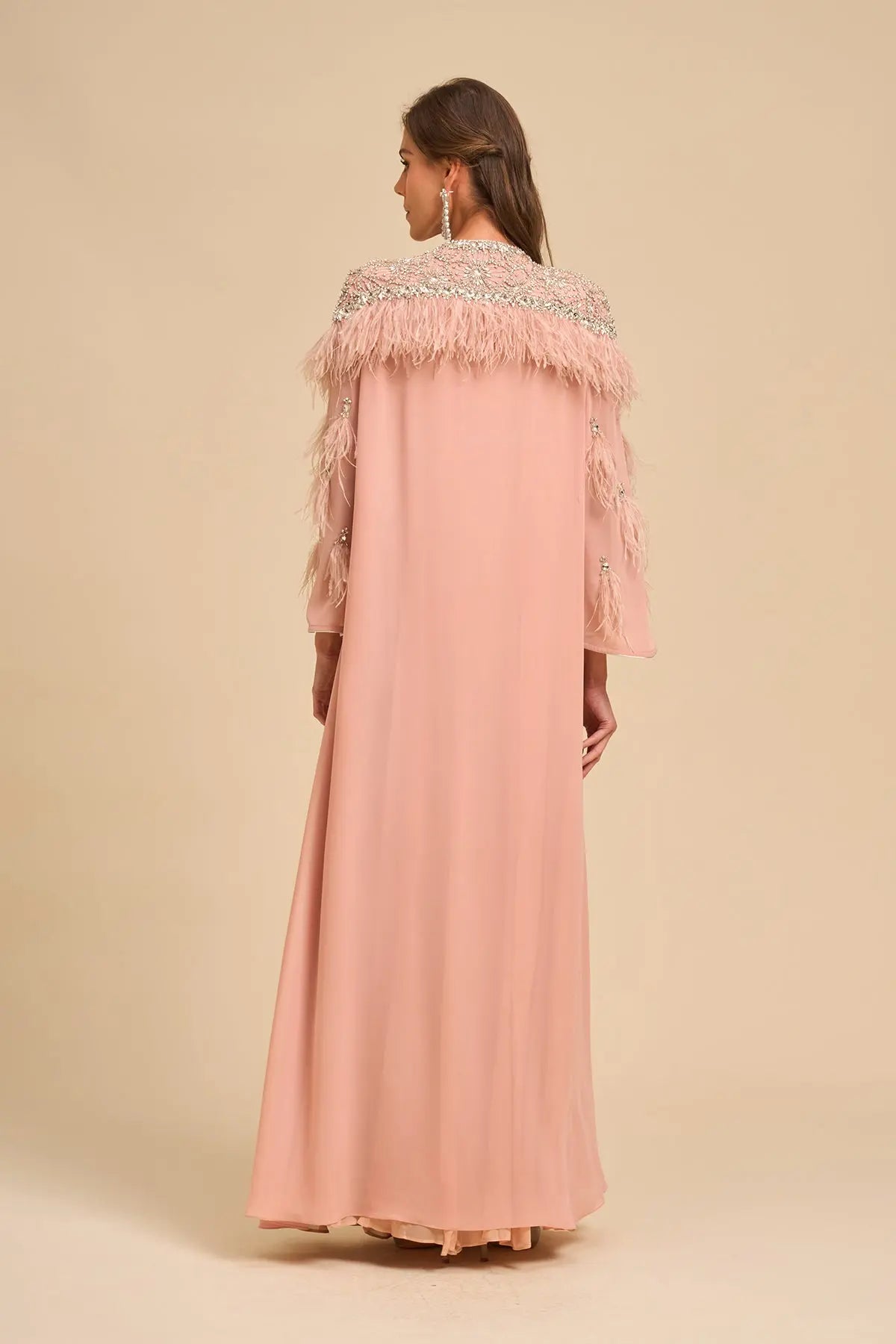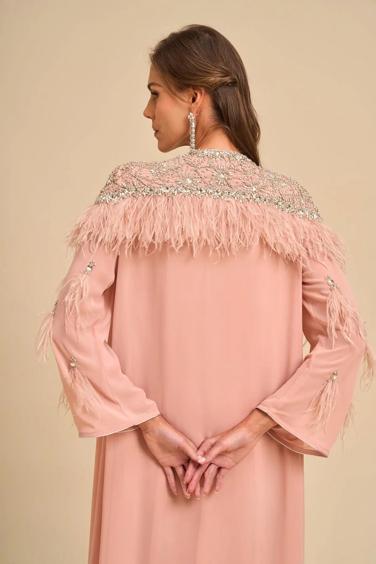 2 Piece Moroccon Cape Set With Luxe Silver Crystals, Beads And Feather Embroidery