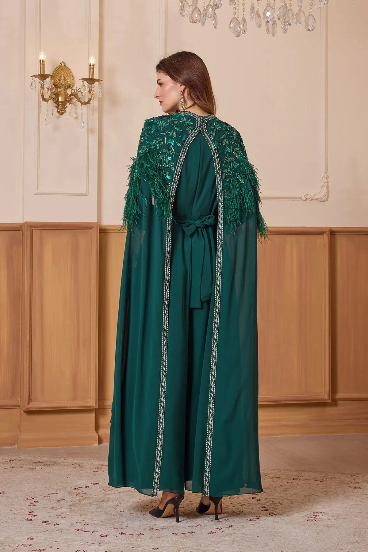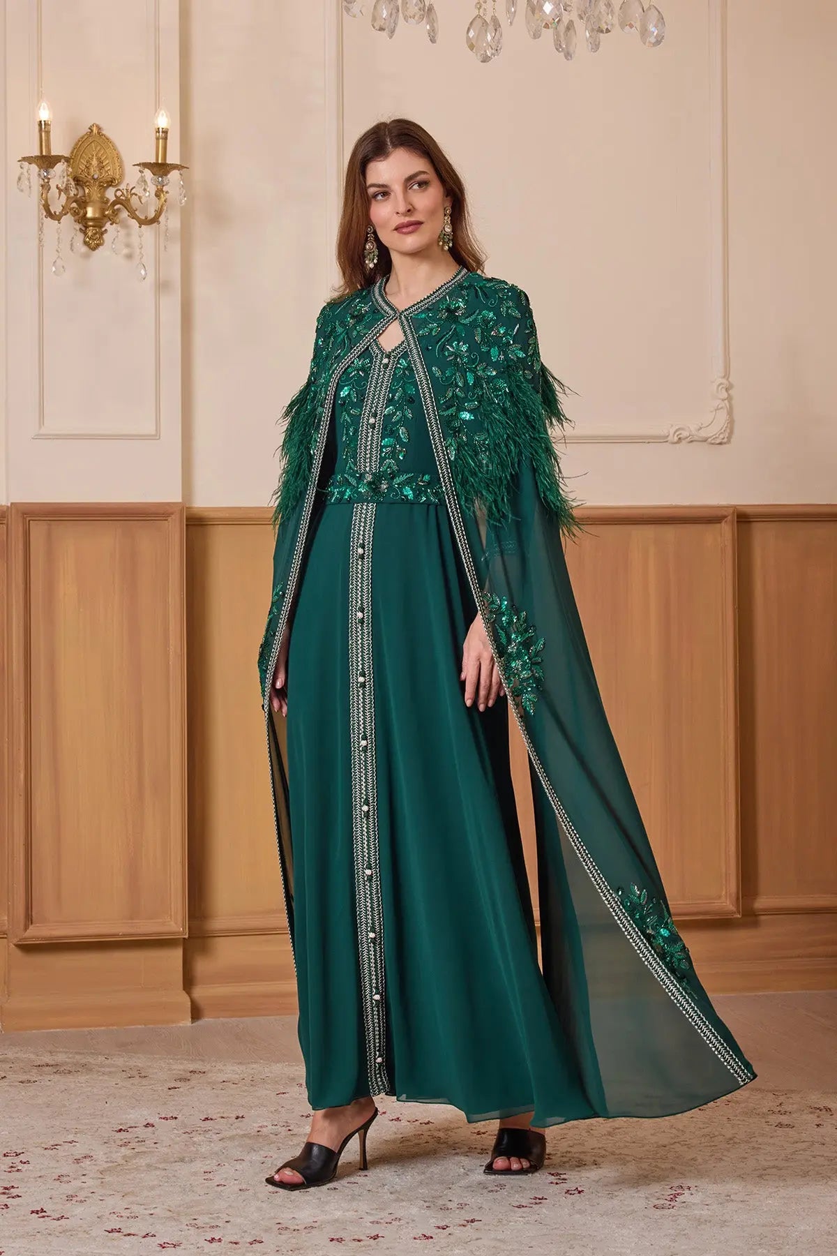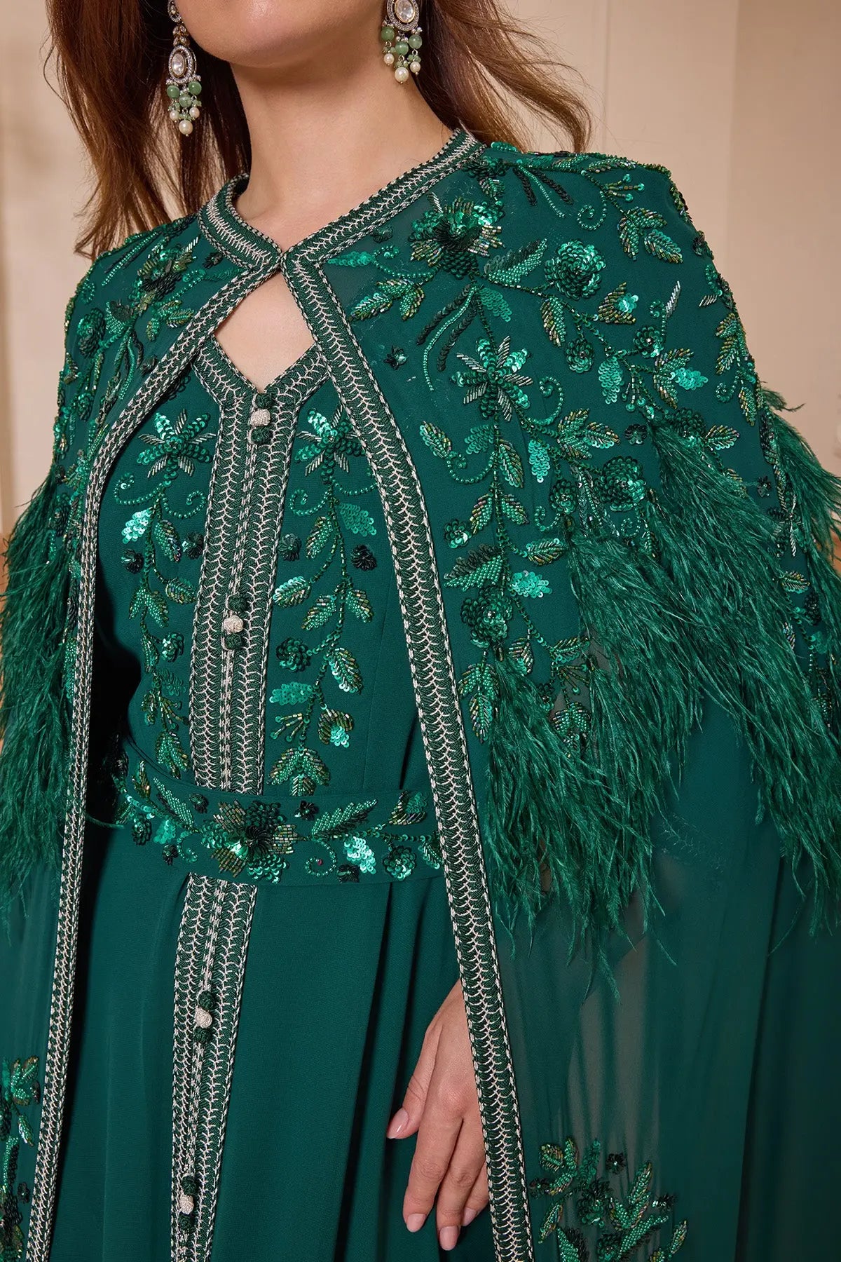 2 piece Moroccan cape set with luxe sequins, crystals and beads embroidery - Feather Detailing