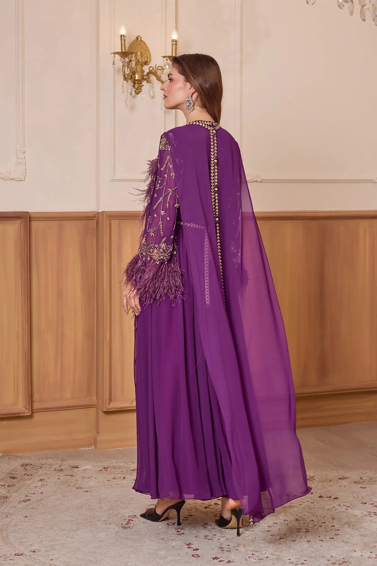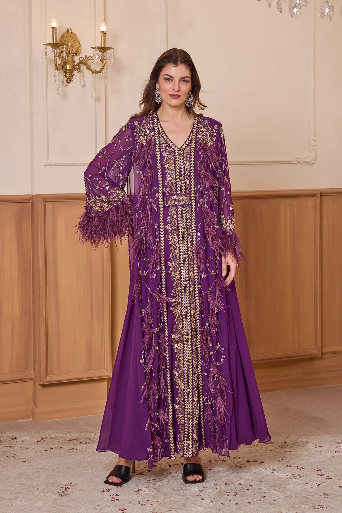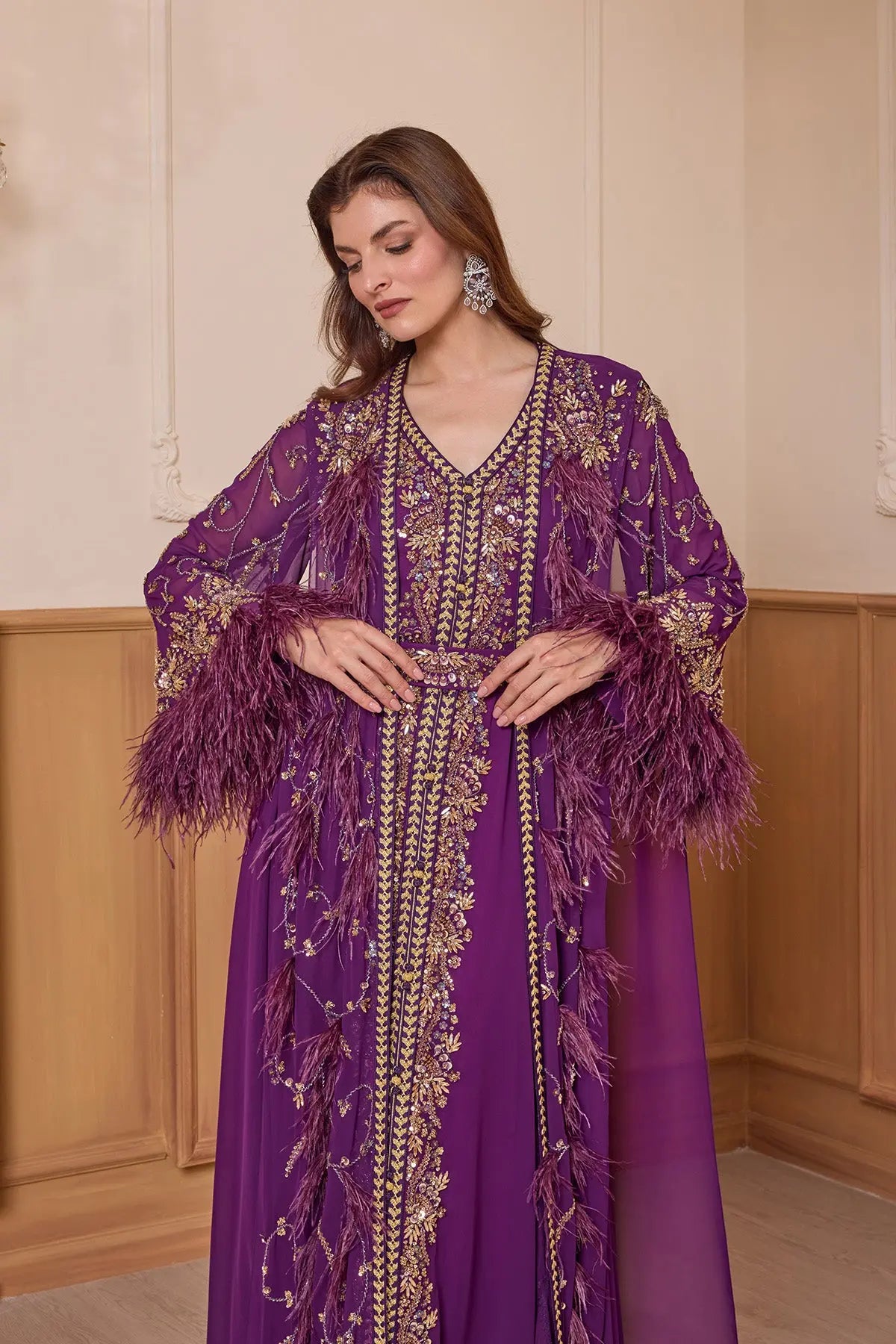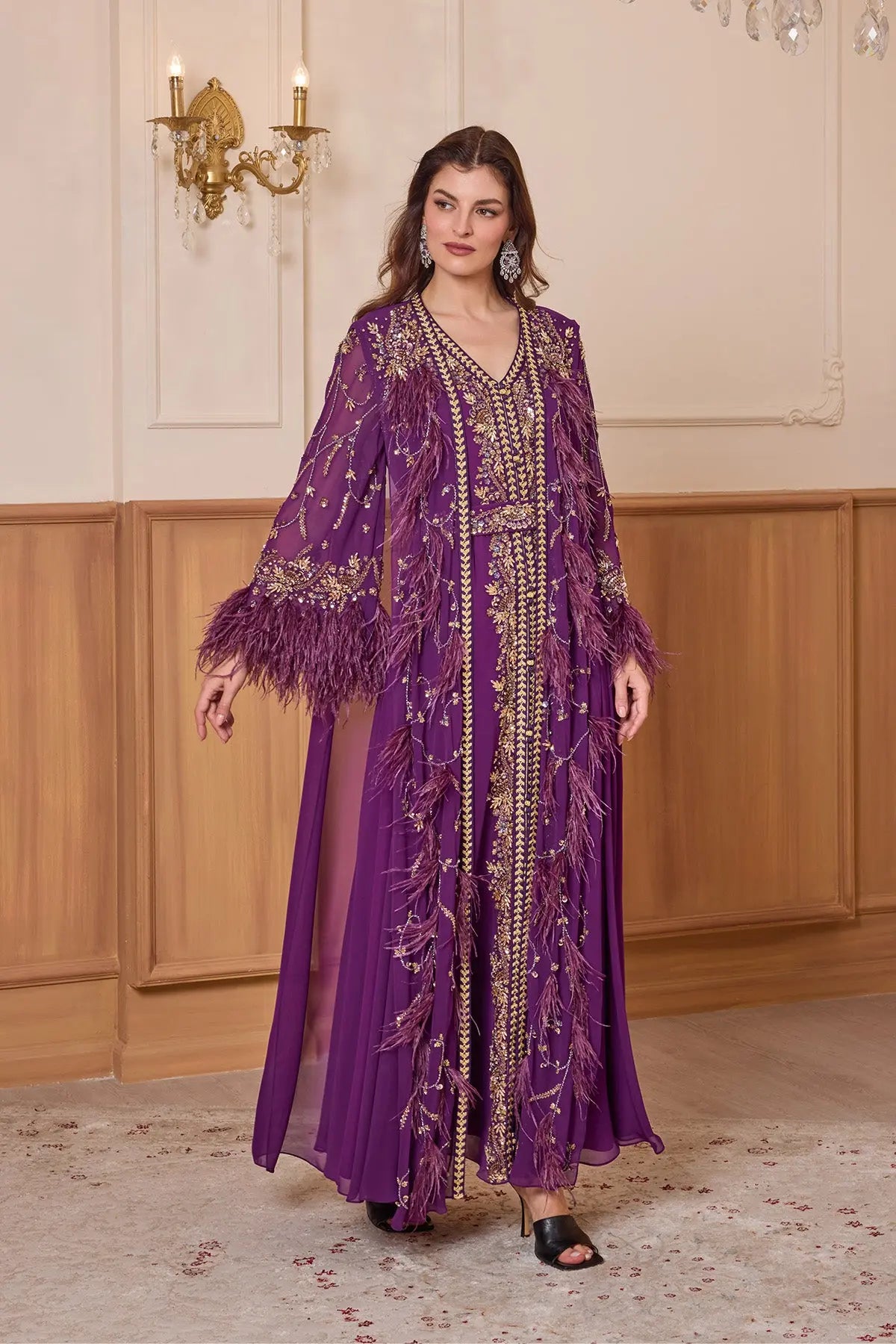 Jewel Purple Moroccon Kaftan with luxe sequins and feather embroidery details