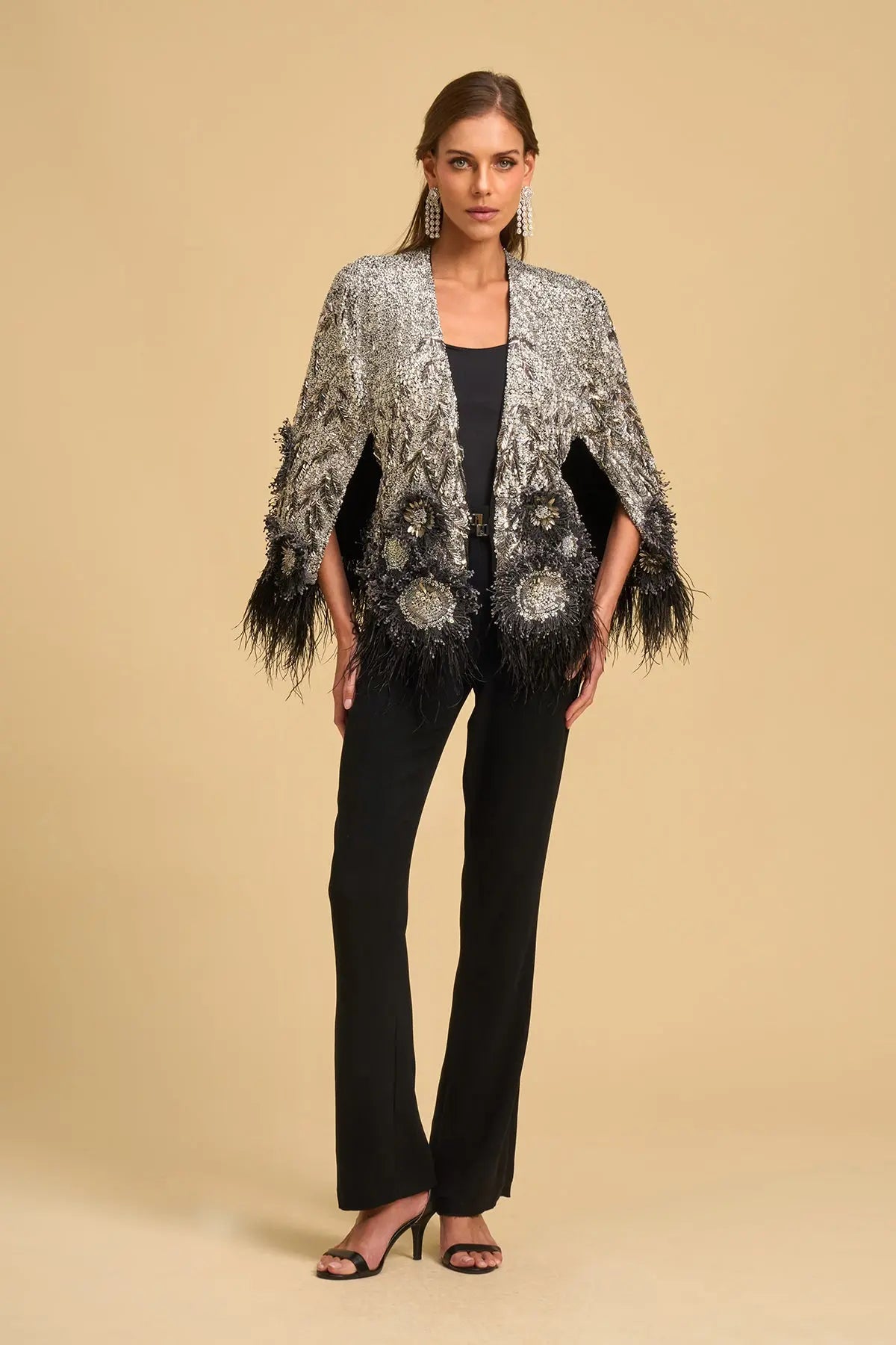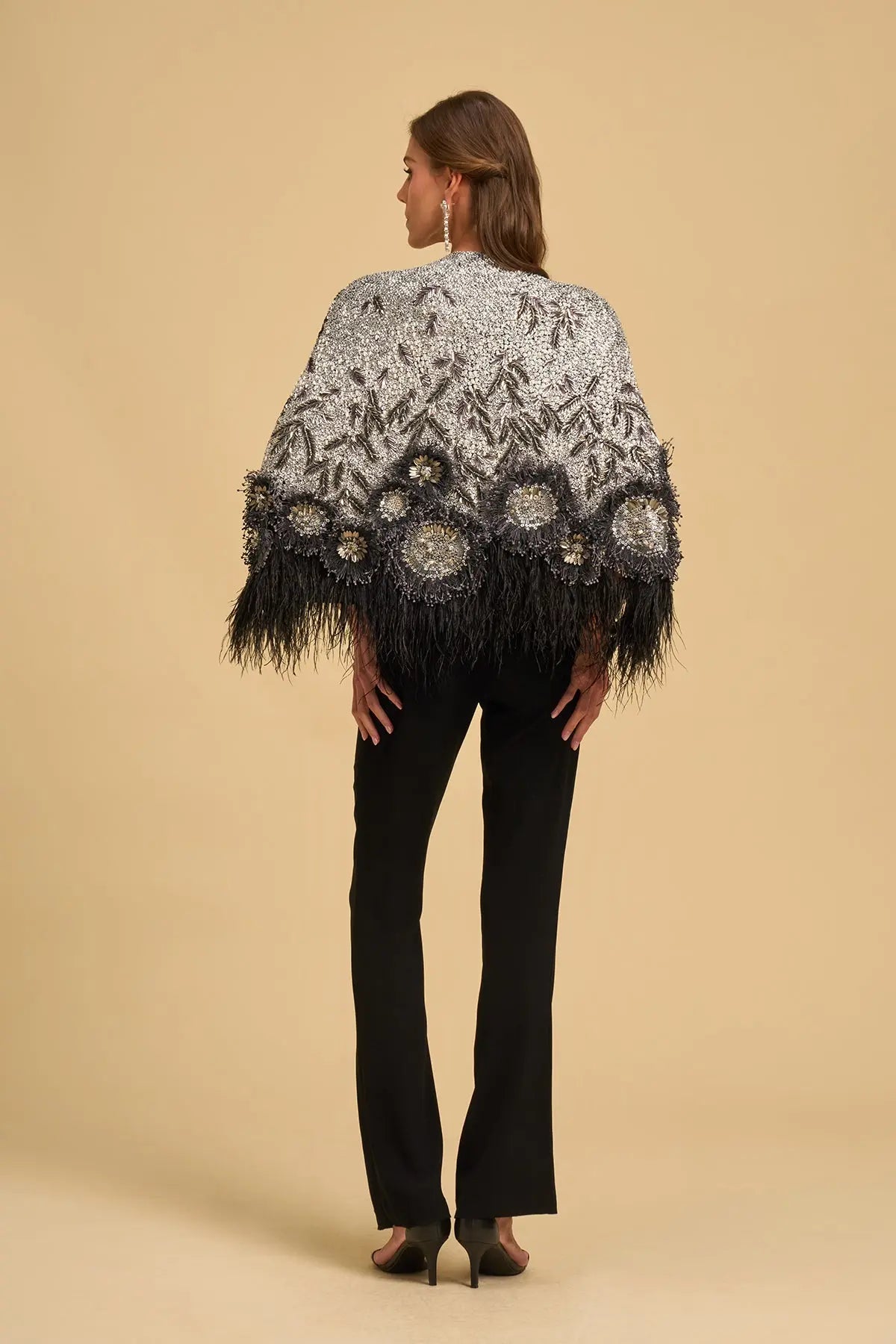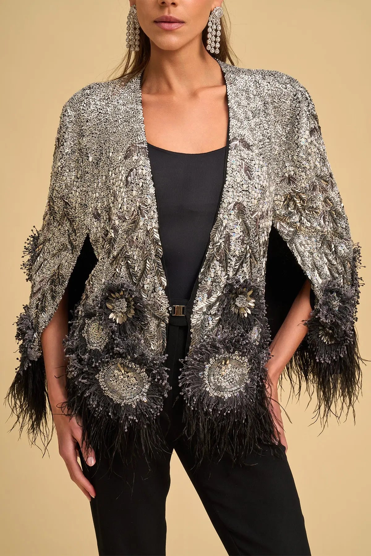 Embroidery Details:Luxe 3D floral and sequins embroidery with feather detailing