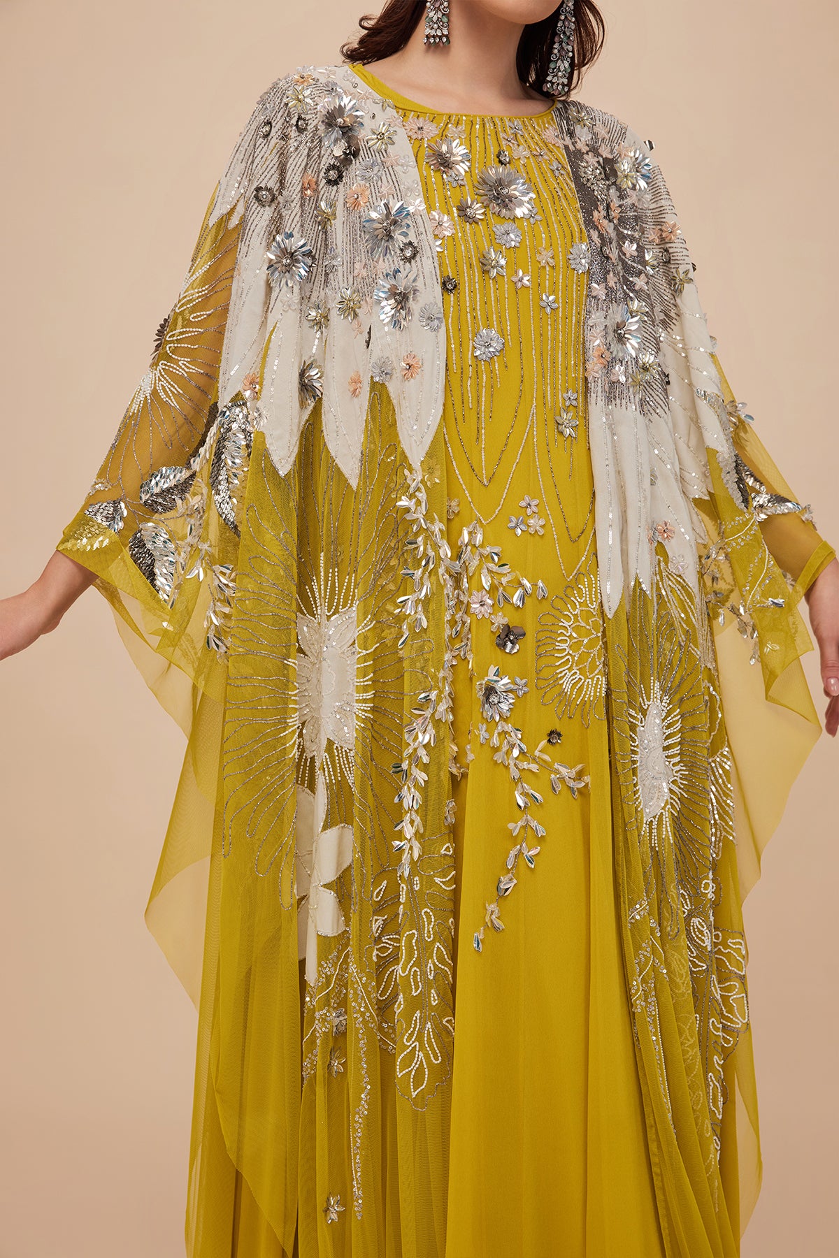 • Embroiderary Details :Luxe sequins and beads embroidery with rhinestones