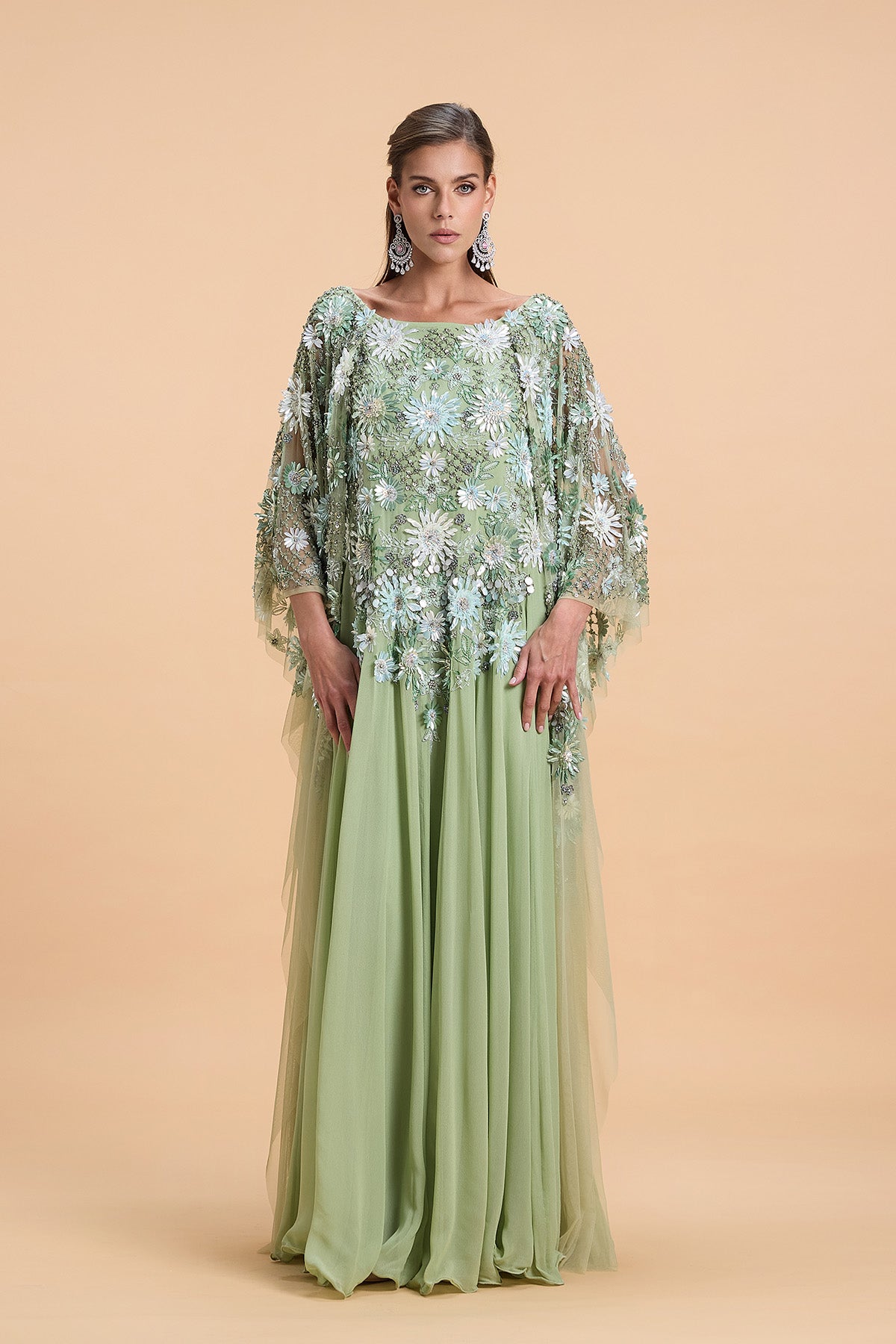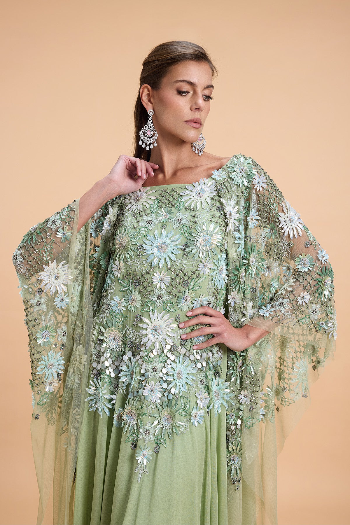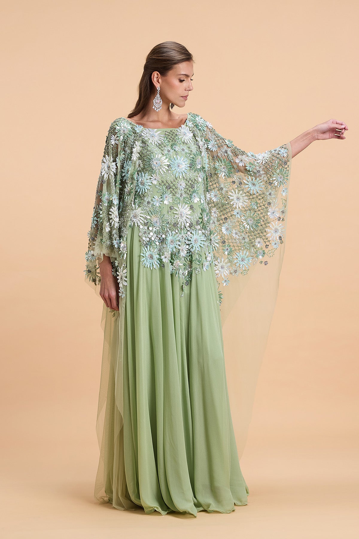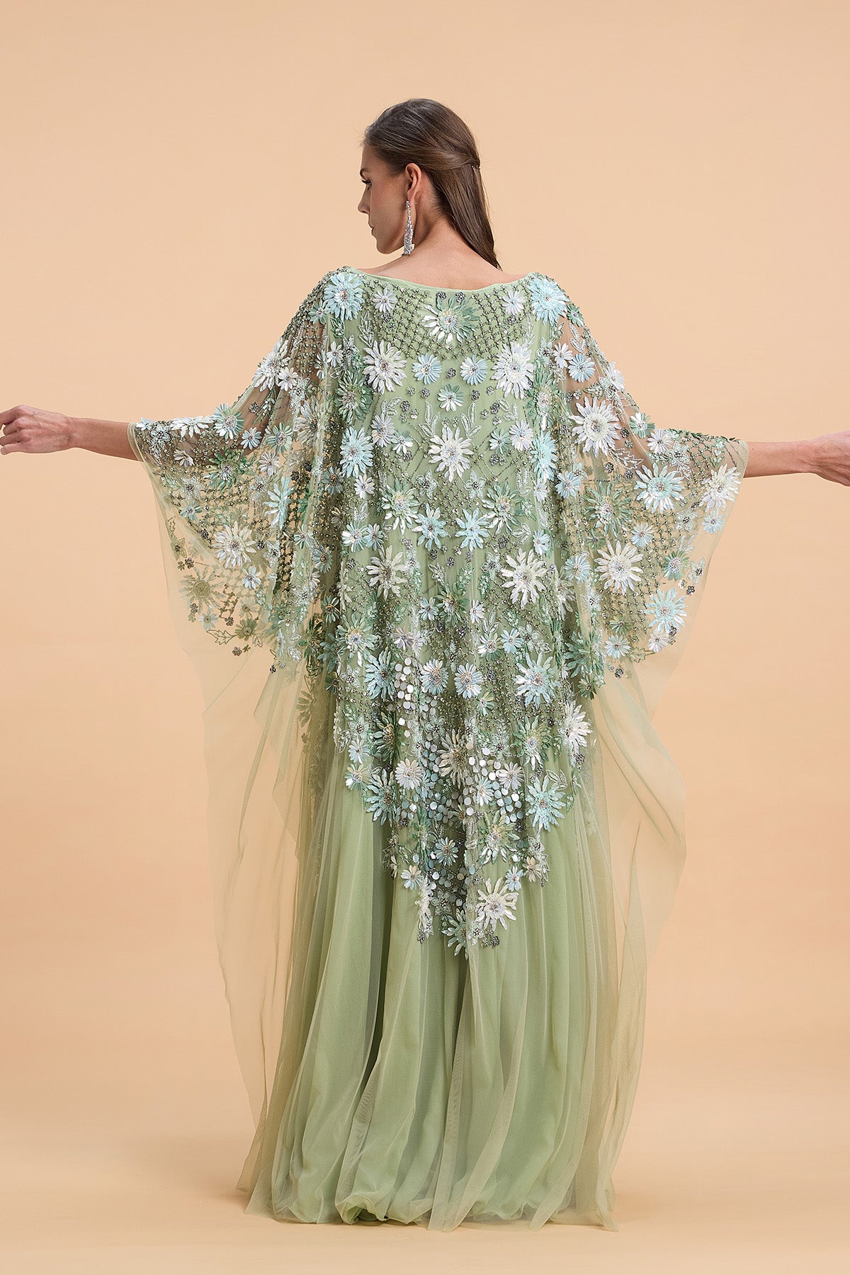 MINT GREEN FLORAL SEQUINS KAFTAN